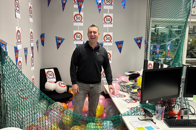 Een Abraham op kantoor! Arjan van de Velde (hoofd service van Logiqs) is 50 geworden. "Uiteraard hebben we hem in geheel eigen stijl even in het zonnetje gezet."