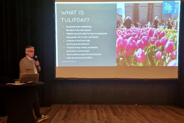Aansluitend verzorgde Paul Ras, projectmanager van de stichting, een inspirerende presentatie. Hij liet zien hoe de tulp en de aanleg van een tulpenpluktuin kunnen fungeren als verbinder voor steden – niet alleen als iconisch landbouwproduct, maar vooral als krachtig promotiemiddel en economische motor.