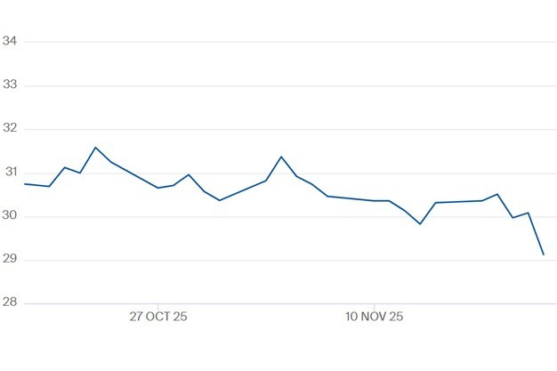 TTF-gasprijs voor het contract Cal 2026 t/m 21 november 2025. Klik hier voor de actuele gascontractprijzen.