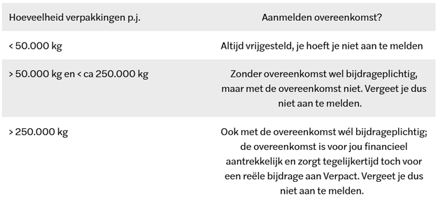 De verantwoordelijkheid voor de uitvoering van de aangifte blijft ongewijzigd en ligt bij de individuele kweker of importeur. Sierteeltbedrijven hebben voordeel bij de overeenkomst als zij meer dan 50.000 kg verpakkingen per jaar toevoegen en/of importeren op de Nederlandse markt.