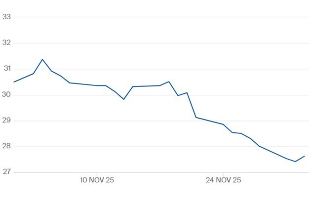 © ICETTF-gasprijs voor het contract Cal 2026 t/m 3 december 2025. Klik hier voor de actuele gascontractprijzen.