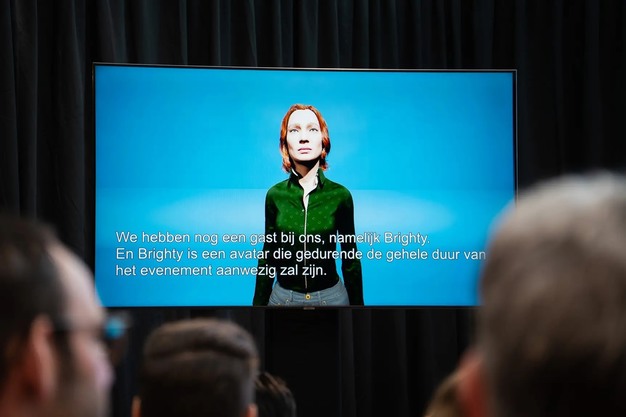 AI-avatar Brighty was het hele event aanwezig. Ze stelde vragen aan Ingrid Vermeer, CEO van Brightlands Campus Greenport Venlo.