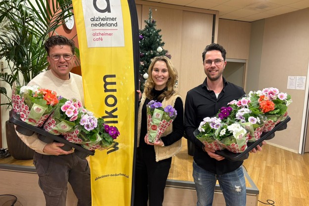 Herinneringen worden nóg waardevoller als je ze samen maakt. Vanuit die gedachte verbindt telersvereniging Sweet Kisses zich dit seizoen aan Alzheimer Fonds DWO (Delft, Westland en Oostland). Als aftrap brachten voorzitter Gertjan Sosef (Ammerlaan-Sosef) en Thijs van der Valk (OK Plant) deze week een bezoek aan het Alzheimer Café in Naaldwijk, waar zij Sweet Kisses primula's uitdeelden aan mantelzorgers en vrijwilligers als dank voor hun inzet. "Met de planten brengen we vrolijkheid en kleur tijdens deze vaak donkere en regenachtige wintermaanden. Juist nu hebben mensen behoefte aan warmte en gezelligheid. Daar zorgen de Sweet Kisses met hun vele mooie kleuren zeker voor."