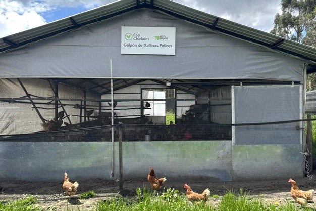 Onder de minder bekende initiatieven bij Ecoroses is een ongewoon duurzaamheidsproject: Eco-Chicken. "Eco-Chicken is een project dat principes van de circulaire economie implementeert," legt Paulina uit. De boerderij houdt 250 scharrelkippen in een gebied met vier weidezones en een speciale schuur.