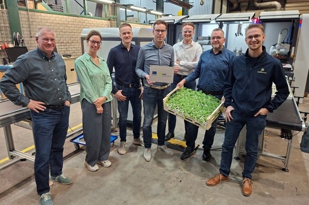 Henk Jan van Ooijen en Teus van Vianen van TTA-ISO, Peter Hobo van Horizon Technologies en Leendert van Tuijl van Linflowers Chrysanten namen de officiële plaquette in ontvangst van Johan Buse en Eefje Nillesen van de provincie Gelderland. De succesvolle subsidieverlening werd voorbereid door Jesse Voets en Job Kropman namens PNO Innovation Nederland.