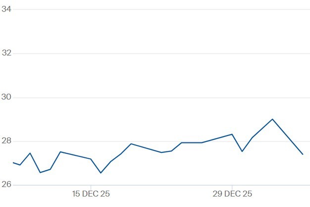 De TTF-gasprijs schoot maandag even omhoog, maar echt geschrokken is de gashandel niet van het winterweer in Nederland. Maandag zakte de gasprijs gewoon terug, waardoor de prijzen niet hoger dan zo'n 27 euro per megawattuur blijven liggen voor heel 2026.