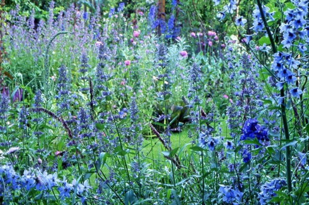Gemengde borders in de zon kunnen niet zonder vlambloemen; ze geuren heerlijk en trekken veel insecten en vlinders aan. De bloemschermen zetten de toon met hun mooie kleuren. Ton en Gert passen de lilapaars bloeiende Phlox paniculata 'Hesperis' vaak toe, vanwege de lange bloeitijd en de veel kleinere bloempjes, die er natuurlijk uitzien. We zijn Coen Jansen dankbaar dat hij deze heeft geselecteerd. Een mooi effect geeft het als ze omgeven wordt door massa's roodzwarte bolletjes van Sanguisorba officinalis 'Tanna', die tegelijk bloeit en later een mooie herfstkleur heeft. Zet hier dan ook nog Campanula lactiflora 'Loddon Anna' en Nepeta sibirica bij: super!