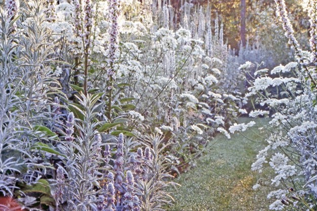 Zonder de prachtige alsems zouden de borders op kleur nooit zo goed gelukt zijn. Vooral de helder zilverkleurige Artemisia ludoviciana 'Silver Queen' is een topper! Deze zilverkleurige koningin is wel een dame met neiging tot woekeren, maar dat is haar vergeven. Ze is nu eenmaal erg nuttig om de hoofdkleuren van de border nog beter tot hun recht te laten komen. Het zilver drukt de groene bladkleur wat weg en daardoor lijken witte borders veel witter. Door het contrast zijn warme tinten juist gloedvoller. Het lijkt ook net of er licht in de border komt, door dat zilver.