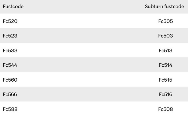 Welke subturn (fust)codes zijn beschikbaar?