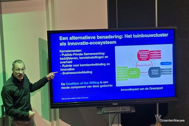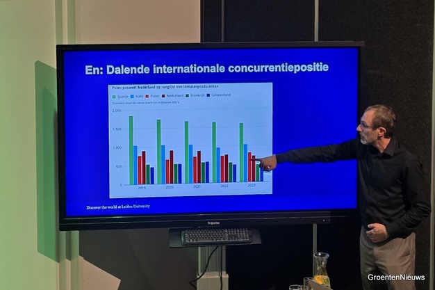 Tholen - In de glastuinbouwsector vertelt men graag over de koploperspositie die 'we' hebben als Nederland. Als je kijkt naar hightech techniek in de sector en productiviteit, dan is hoogleraar Peter Bodegom het daarmee eens. Cijfermatig wil hij het populaire narratief wel nuanceren. In 'bulk' is Nederland geen koploper. Dat kunnen andere grote tuinbouwlanden ook. Hoe blijft de Nederlandse glastuinbouwsector levensvatbaar? Met de beperkte ruimte die er in Nederland is, staat de tuinbouw onder druk.