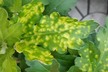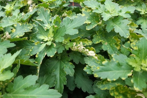 Roestsymptomen aan de bovenzijde van de plant bij chrysanten
