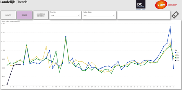 In januari 2026 is de omzet bij bloemisten gedaald met 20% t.o.v. dezelfde periode een jaar eerder. De belangrijkste oorzaak hiervoor is de sneeuw die in de eerste twee weken van het nieuwe jaar is gevallen. Dit heeft geleid tot fors minder klanten. Zowel de winkelomzet (-19,8%) als de omzet op rekening daalden met nagenoeg hetzelfde percentage (-19,8% vs. -20,7%). Vanaf week 3 ziet VBW dat de omzet opkrabbelt, maar nog niet het niveau van 2025 behaalt.