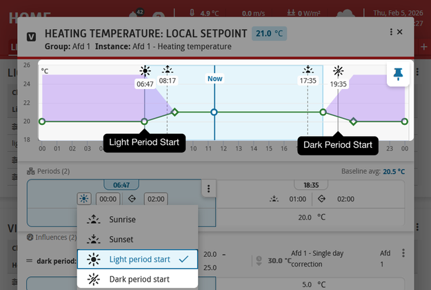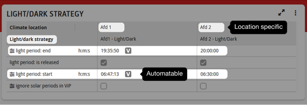 De licht/donkerstrategie in IIVO introduceert daarom een fundamenteel eenvoudigere benadering. In plaats van tientallen tijdsinstellingen werkt de aansturing vanuit twee centrale ankerpunten: de start van de lichtperiode en de start van de donkerperiode. Alle klimaat- en teeltinstellingen bewegen vervolgens automatisch mee met deze overgangsmomenten.