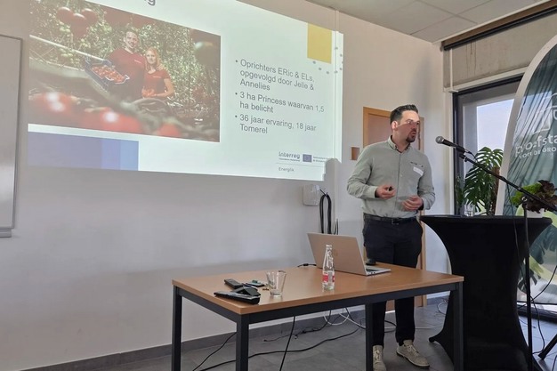 © EnerglikJelle De Ryck van Tomerel deelde zijn ervaringen als demopartner in het Energlikproject op 2 oktober 2025, op bezoek bij het Proefstation voor de Groenteteelt in Sint-Katelijne-Waver.