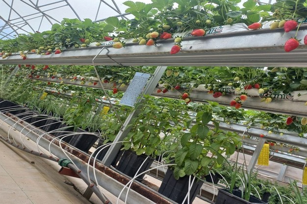 Een belangrijk onderdeel van de proeven op Claros Farm was de strategische plaatsing van aromatische planten onder de teeltgoten en langs de kasranden.