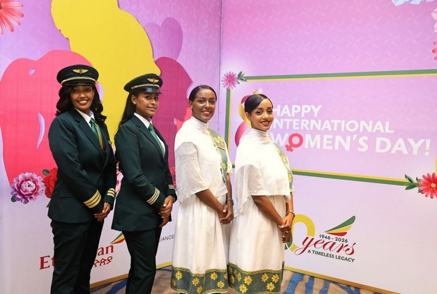 Ethiopian Airlines Group vierde Internationale Vrouwendag met vluchten naar acht bestemmingen die volledig bemand waren door vrouwen, ter ere van de acht decennia aan dienstverlening van de luchtvaartmaatschappij.