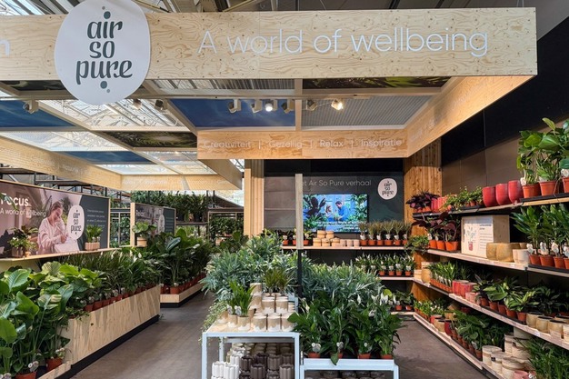Air So Pure is het merk en de gelijknamige telersvereniging met 12 kwekers van sterk luchtzuiverende planten. Het assortiment bestaat onder andere uit Spathiphyllum, Nephrolepis, Monstera, Kentia, Calathea, Dracaena en Hedera. Alle producten zijn wetenschappelijk getest en hebben onderbouwd een sterke luchtzuiverende werking. "Als telersvereniging hebben we ambitieuze doelen, waarvan duurzaamheid er één is", zegt Pim van der Knaap van KP Holland. Binnen het bestuur van Air So Pure is hij verantwoordelijk voor dit thema. "Schone lucht heeft natuurlijk een duidelijke match met duurzaamheid. Daarom voelen wij een zekere verantwoordelijkheid om die handschoen op te pakken. Maar we zijn een gevarieerde club. Daarom is het goed als de neuzen dezelfde kant op staan. De een is verder met verduurzamen dan de ander. Dat is niet erg. Maar om ervoor te zorgen dat iedereen er wel mee bezig blijft, hebben we met elkaar afgesproken dat we allemaal jaarlijks een footprintberekening doen volgens de regels van de FloriPEFCR."