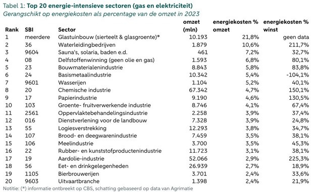 In de glastuinbouw (groente- en sierteelt) schommelen uitgaven aan energie tussen de 15 tot 25 procent van de totale kosten. De sector hanteert doorgaans een professionele energiebeheerstrategie met een mix van energiecontracten, aldus ABN AMRO. Hierdoor werken prijsstijgingen geleidelijk en met vertraging door in de bedrijfsresultaten.