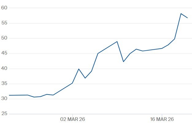 De nieuwe week is begonnen met een TTF-gasprijs rond de 60 euro per megawattuur en brandstofprijzen die blijven stijgen. 1 liter Euro95 kost maandag in Nederland 2,574 euro en 1 liter diesel 2,682 euro.