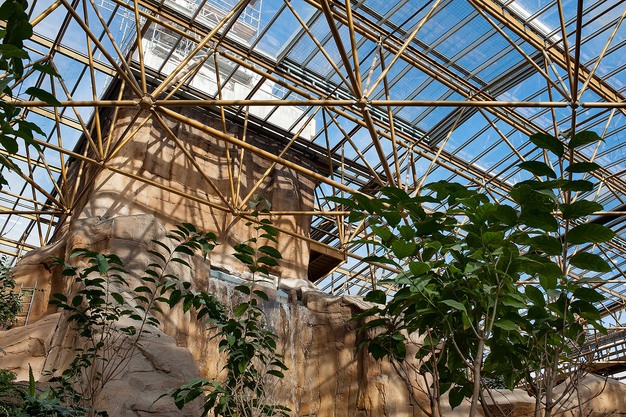 Zo bestaat de dakstructuur uit grote prefabmodules, die op de grond werden opgebouwd en in korte tijd tot zo'n 20 meter hoogte werden gehesen. Ook de beglazing werd specifiek voor dit project ontwikkeld. Ze zorgt voor isolatie en reguleert tegelijk zonlicht en UV-straling. "Normaal bouwen we serres voor teelten of botanische toepassingen, maar hier moesten we een leefwereld creëren waarin verschillende ecosystemen samenkomen. Dan moet elk detail juist zitten. Bovendien liggen de veiligheidsnormen hoger, zijn de technische vereisten strenger en ook de klimaatregeling vraagt een heel andere benadering", weet de CEO van Deforche Construction Group.