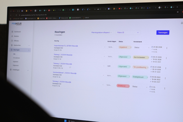 Onderdeel van de nieuwe ontwikkeling is ook dat Prokeur een portaal ontwikkeld heeft waarin het hele traject inzichtelijk is: van aanvraag en keuringsdatum tot herstelwerk en uiteindelijke goedkeuring. "We zijn sinds 1 januari 2026 overgestapt naar het nieuwe systeem en hebben hier zelf nu al veel profijt van", zegt Lerdy. "Wij hebben meer overzicht en de klant ook. Daar profiteren we allebei van."
