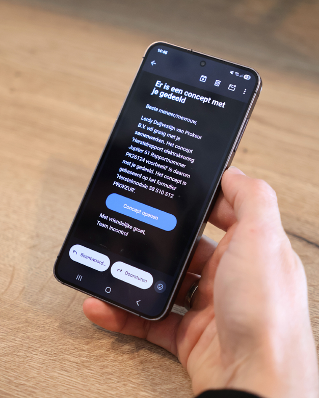Om die reden heeft Prokeur een online tool ontwikkeld waarmee herstelpunten direct kunnen worden afgehandeld. "Zodra een punt uit het rapport is opgelost, kan er meteen een foto en korte toelichting worden toegevoegd door de hersteller. Wanneer alles is hersteld, rondt de installateur of hersteller het dossier af en ontvangen wij automatisch een melding om het snel te beoordelen en goed te keuren. Daardoor blijft het proces voor alle betrokkenen overzichtelijk en zit er vooral voor de klant veel tijdwinst in, omdat er aanzienlijk minder geregel en afstemming nodig is." In sommige bijzondere gevallen is alsnog een herkeuring nodig.