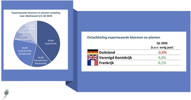 Binnen Europa is het beeld wisselend. Duitsland noteerde een daling van 2%, terwijl het Verenigd Koninkrijk een groei van 4% liet zien. In Duitsland kenden met name bloemen een zwakke start van het jaar, terwijl planten juist goed presteerden. Tegelijkertijd viel op dat de inflatie in Duitsland afgelopen maand het hoogste niveau bereikte sinds januari 2024. Frankrijk bleef stabiel, terwijl vooral Centraal-Europese landen sterke groeicijfers laten zien. De export naar de Verenigde Staten staat daarentegen onder druk.