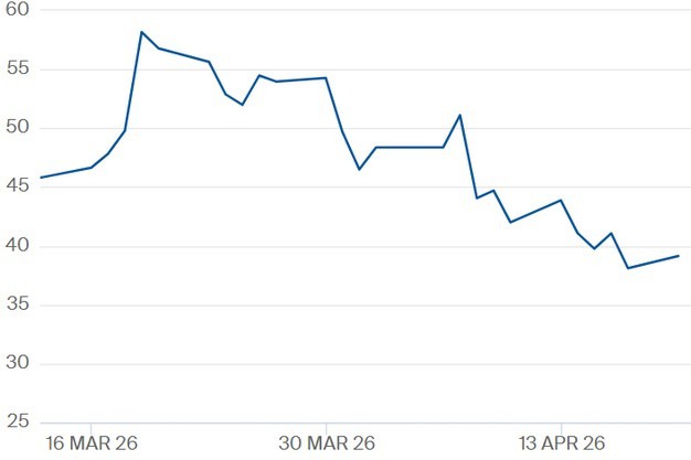TTF-gasprijs voor het contract Q1 2027 tot en met 20 april 2026. Klik hier voor de actuele gascontractprijzen.