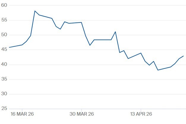 TTF-gasprijs voor het contract Q1 2027 tot en met 23 april 2026. Klik hier voor de actuele gascontractprijzen.
