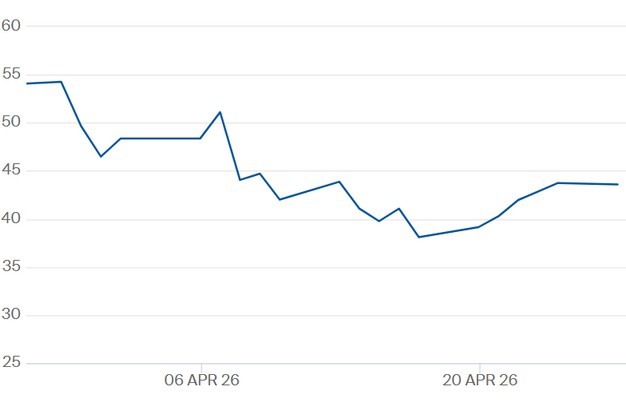 TTF-gasprijs voor het contract Q1 2027 tot en met 27 april 2026. Klik hier voor de actuele gascontractprijzen.