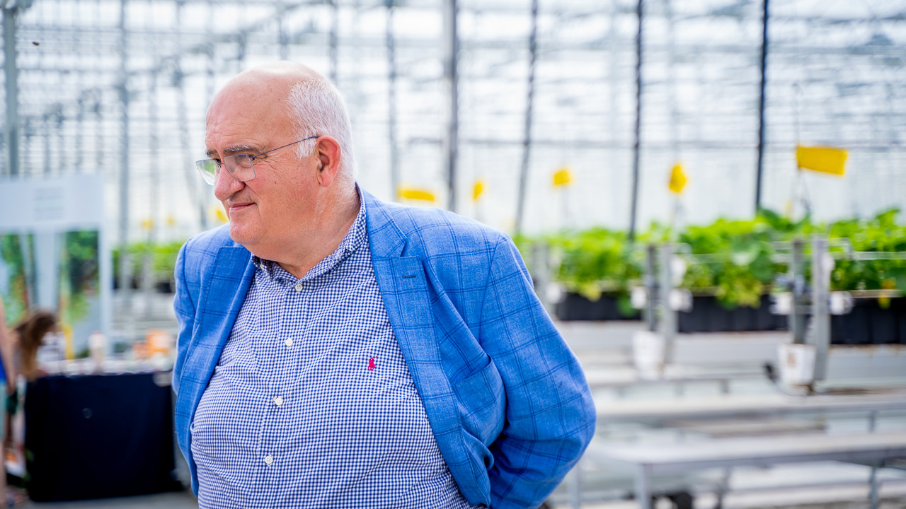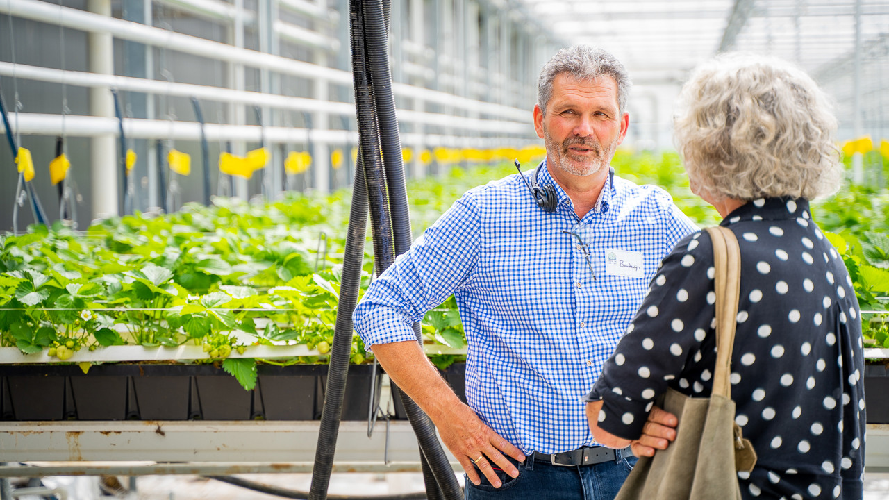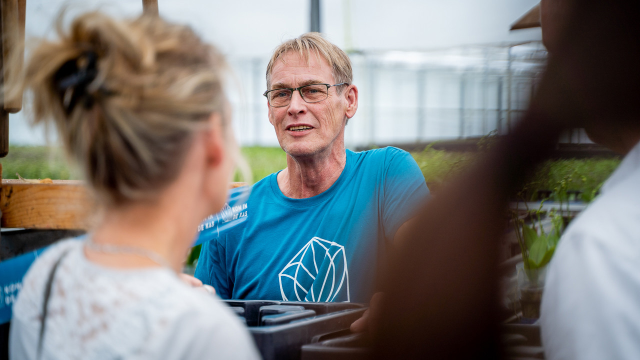 Komt Jos Looije kijken naar iets dat nog zoeter is dan zijn honingtomaatjes? Nee, als bestuurslid van de KIDK organisatie neemt hij een kijkje hoe het gaat. En dat maakt hem trots. "Het is een mooi bedrijf en supergoed georganiseerd. Dit is waar Kom in de Kas voor staat."