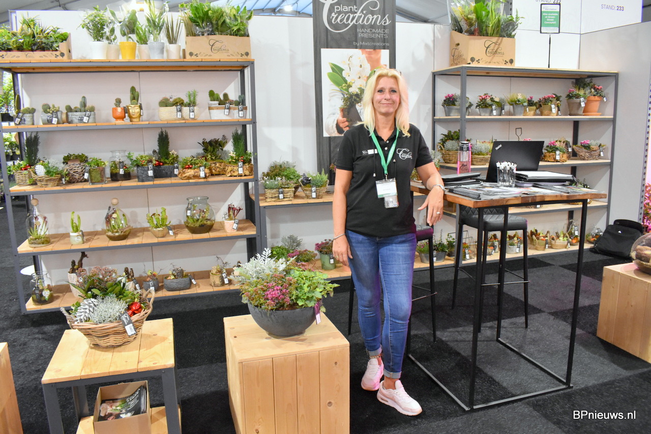 In de stand van Plant Creations stond Angelique van den Haak iedereen te woord die meer wilde weten over hun binnen en buiten arrangementen voor midden en hoog segment.