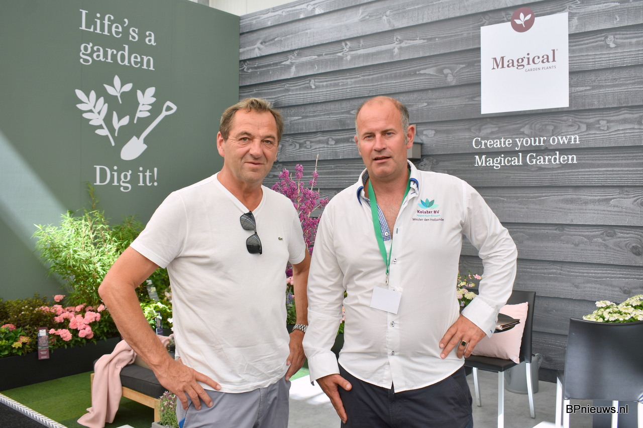 Wouter den Hollander, van Kolster Magical Plants en Flower, samen met één van zijn Magical kwekers uit Dusseldorf. Kolster pakte groots uit deze beurs met hun nieuwe brand Magical Garden Plants. Met dit nieuwe merk willen ze een groot assortiment aan tuinplanten de aandacht geven die zij verdienen.