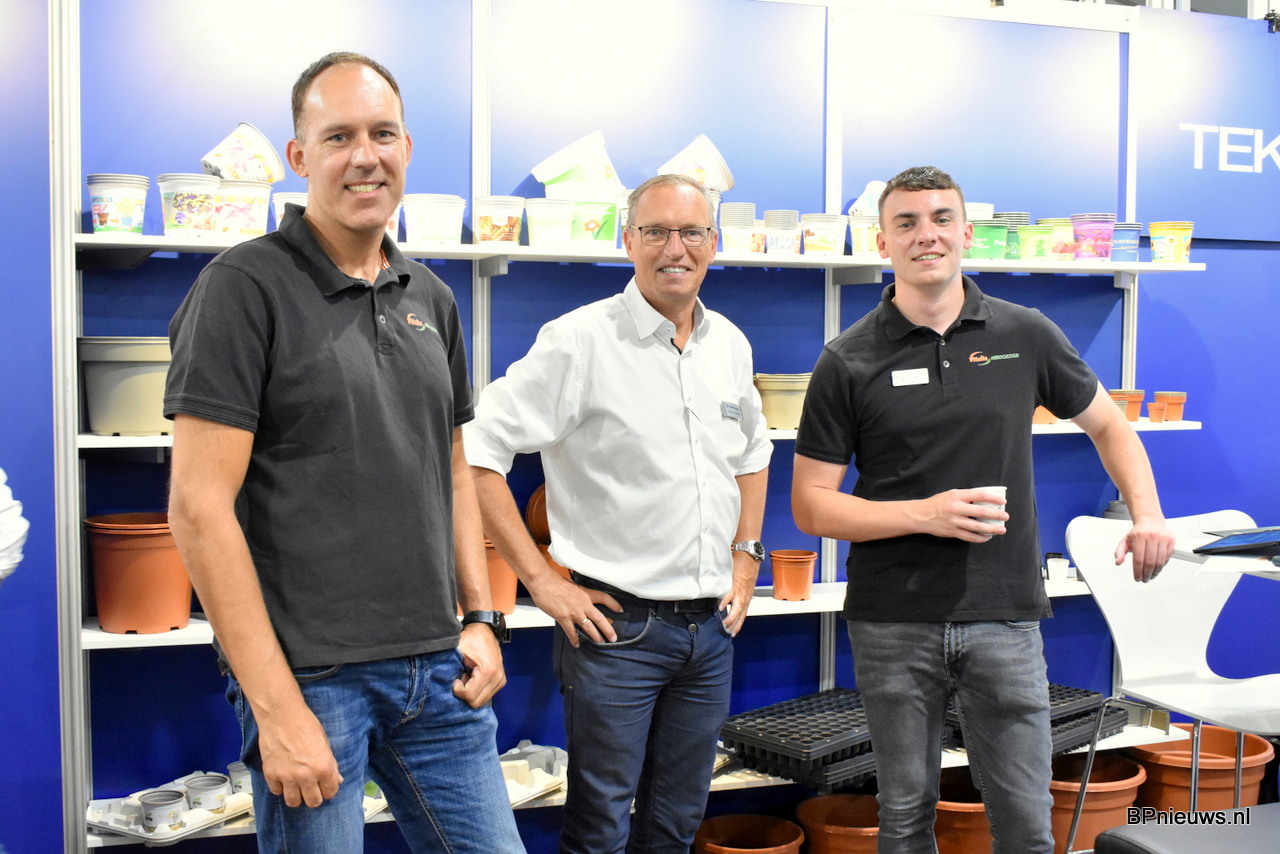 Sneijderplant en Themaplant hadden een gezamelijke stand. De 2 firma’s werken nauw samen en zijn van dezelfde eigenaars. Van links naar rechts; Daan, Paul en Joep.
