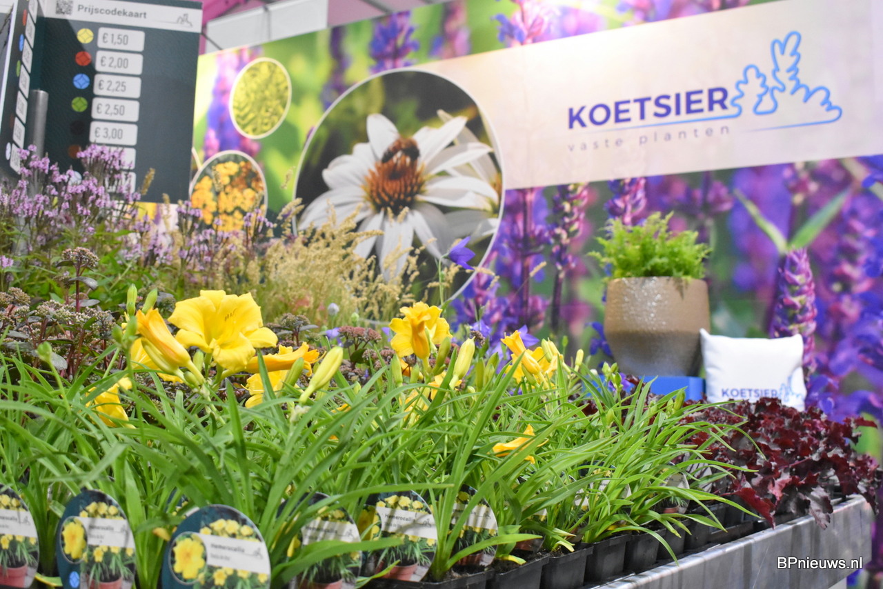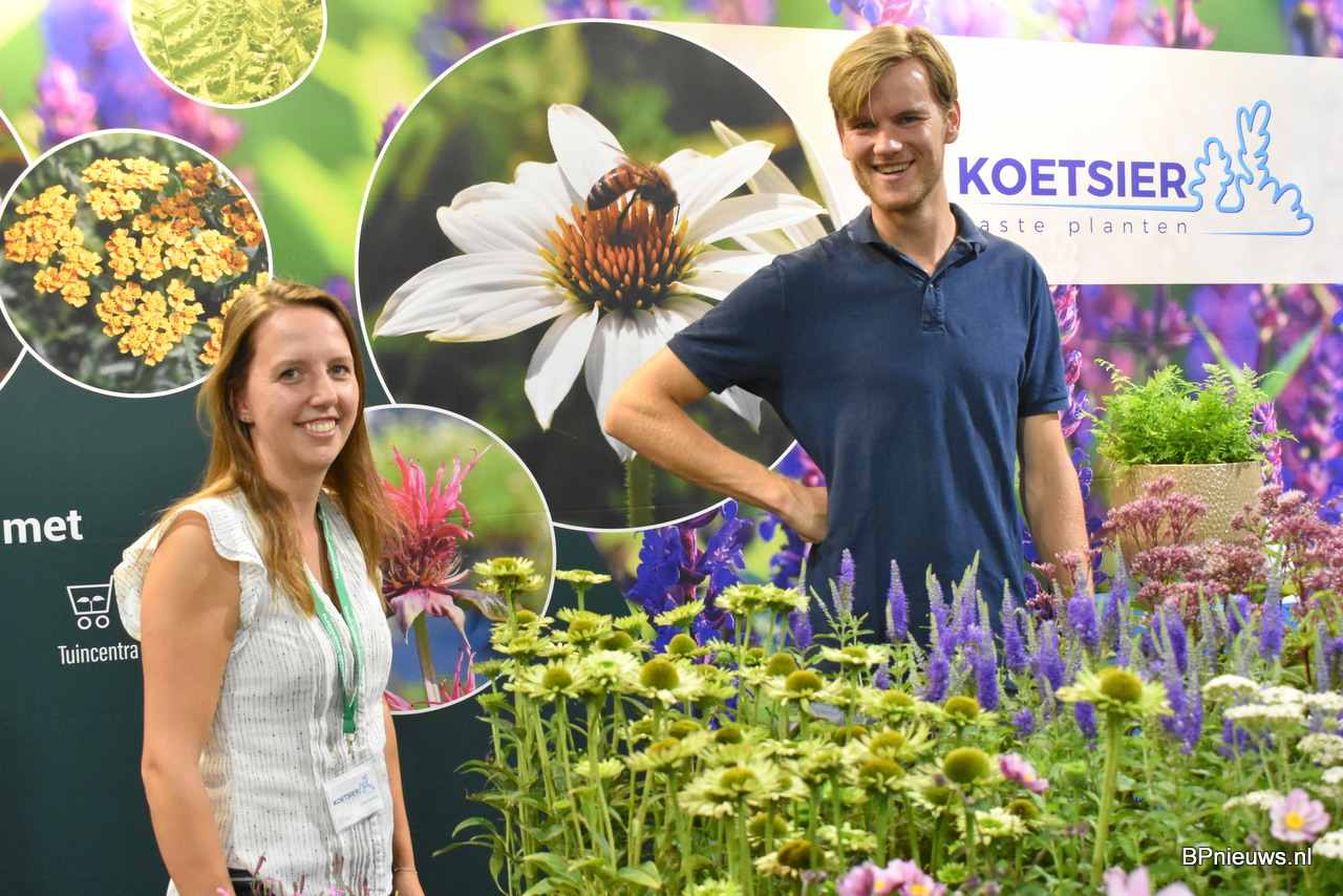 Mees Hollands van Jan Bakker kwam op bezoek bij Yvette van Straalen die namens Koetsier Vaste Planten op de beurs stond. Yvette toonde een deel van hun, maarliefst 1600, vaste planten die zij op de kwekerij hebben.