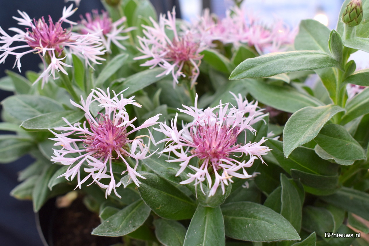 Close up van de Centaurea Montano 'Tini's Pink'.