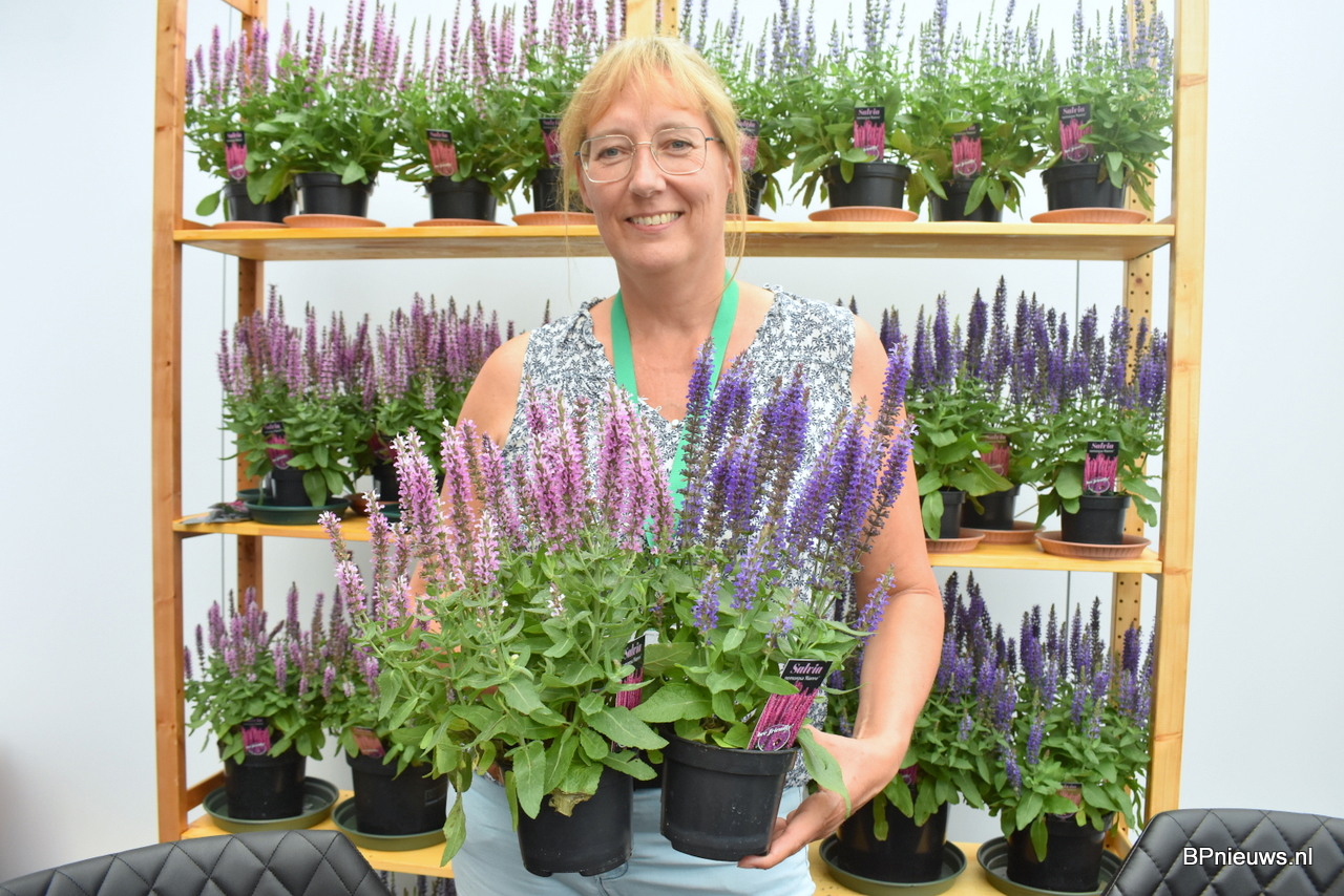 Erna Klop stond op de beurs namens Andre De Gruyter bv. Erna presenteerde hun Salvia Rianne Pink en Salvia Rianne Purple op de beurs. 2 nieuwe soorten uit eigen veredeling die gekenmerkt worden door hun stevigheid en hun volle bloei waarde. Wel zoeken zij nog een vermeerderaar die deze exclusieve Salvia's in het assortiment wilt opnemen.
