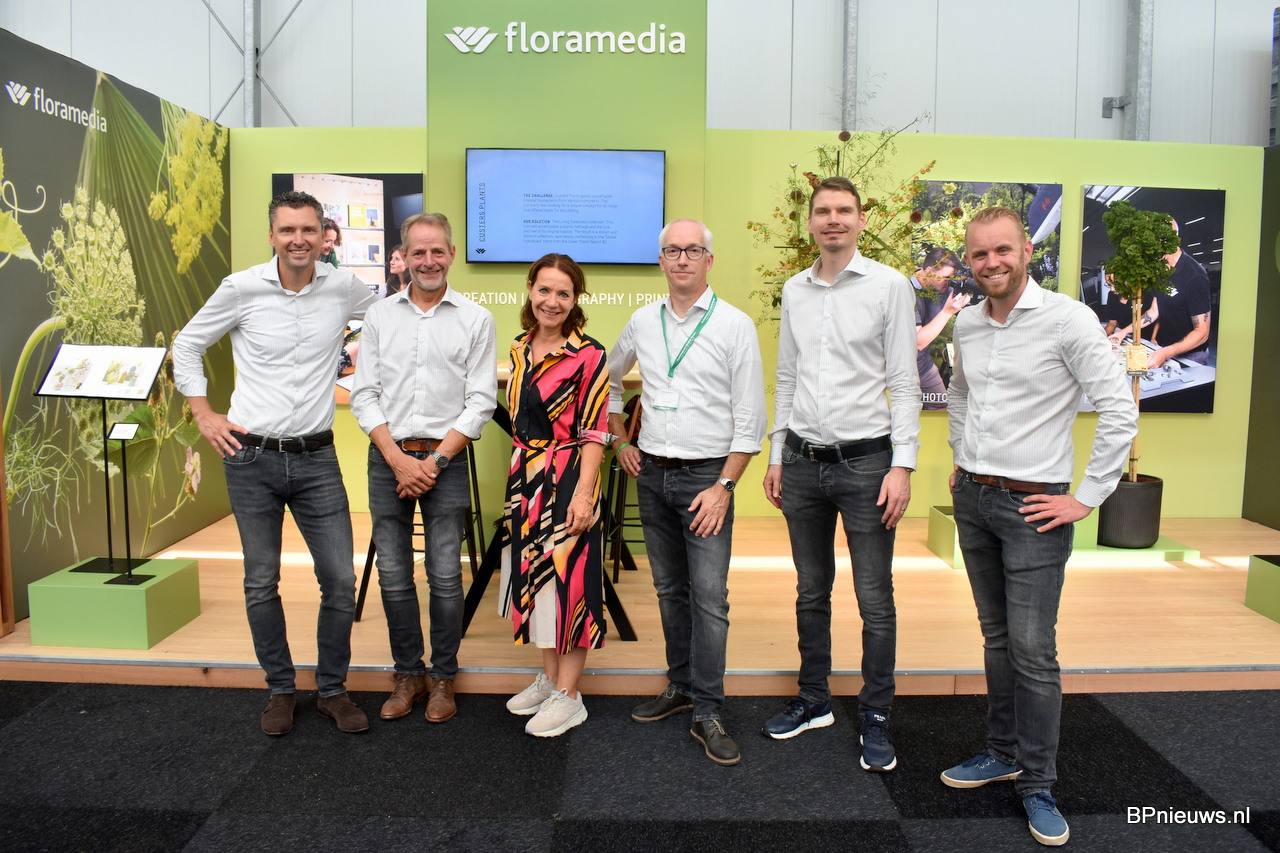 Op de stand van Floramedia werd iedereen warm verwelkomt. En kreeg uitleg waarom zij de geschikte "Creative communication and marketing partner for the green sector" zijn. Het het team van links naar rechts: Ekko Vermeulen, Philippe Maesschalck, Judith Klute, Michel Baan, Juriaan Rolink en Rico van Toor.