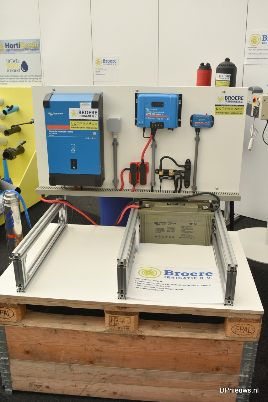 Het nieuwe, volledige off-grid, irrigatiesysteem van Broere Irrigatie bv. Het systeem werkt volledig op zonne-energie door middel van 16 zonnepanelen. het is dé oplossing van Broere voor percelen die zonder net aansluiting zitten. Daarbij bespaar je gemiddeld 40% water ten opzichte van normale beregeningsinstallaties.