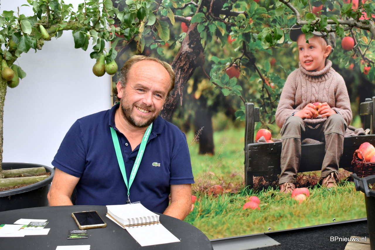 Gerrit Luiten van Boomkwekerij Gerrit Luiten bv had, naast al zijn mooie fruitbomen bij de ingang van het event ook nog een appeltje voor de dorst op zijn stand. Gerrit is bekend om zijn handel in oude fruit bomen, die naast hun sierwaarde nog altijd lekker fruit geven.
