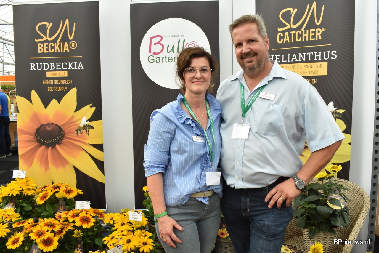 Hartwig en Ultike Bull. Zij focussen met hun bedrijf Bull Gartenbau niet alleen op kweken maar ook veel op veredeling en opkweek. Ze stonden deze Plantarium|Groen-Direkt dan ook met eigen genetica van hun Echinacea, Helianthus en Rudbechia.