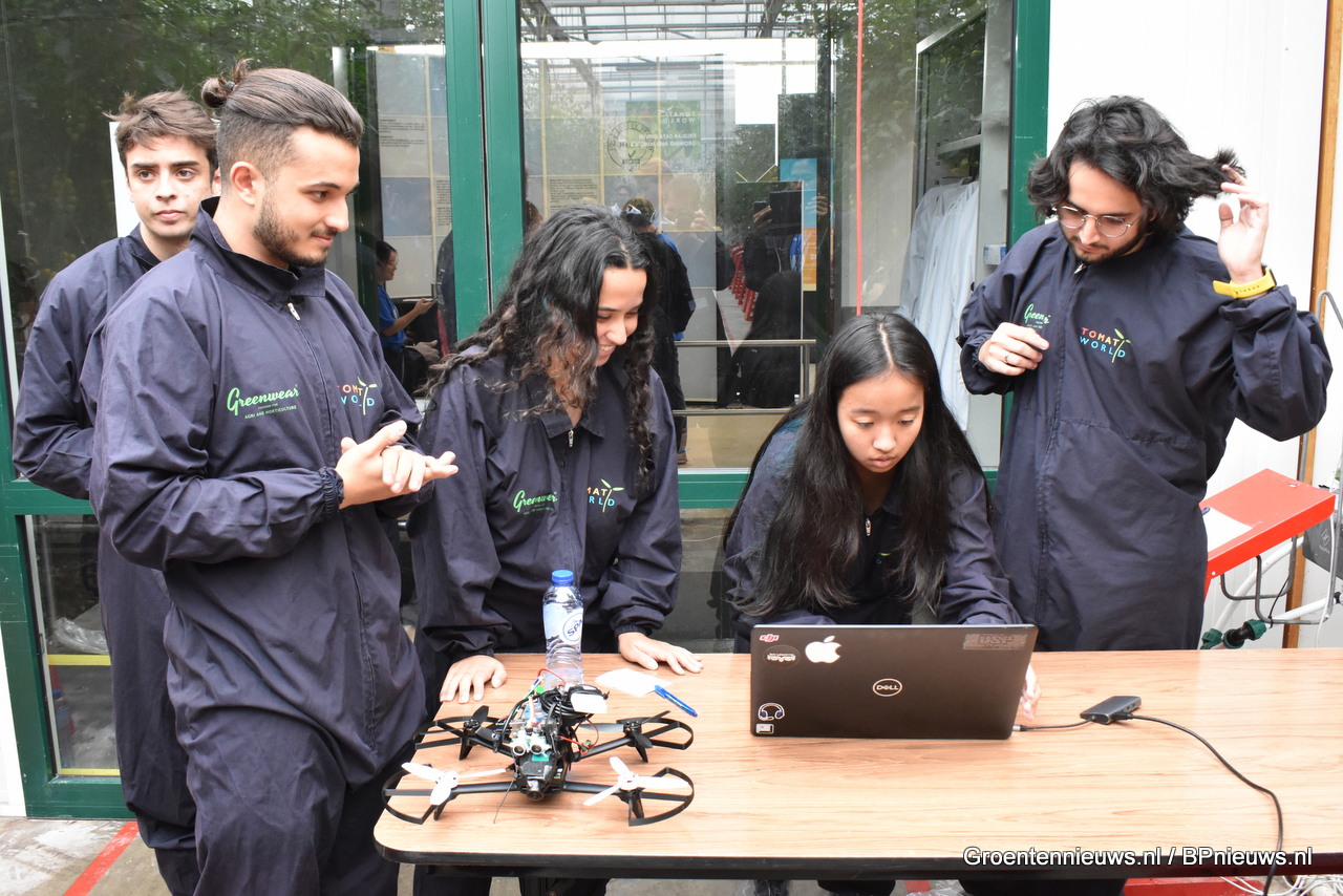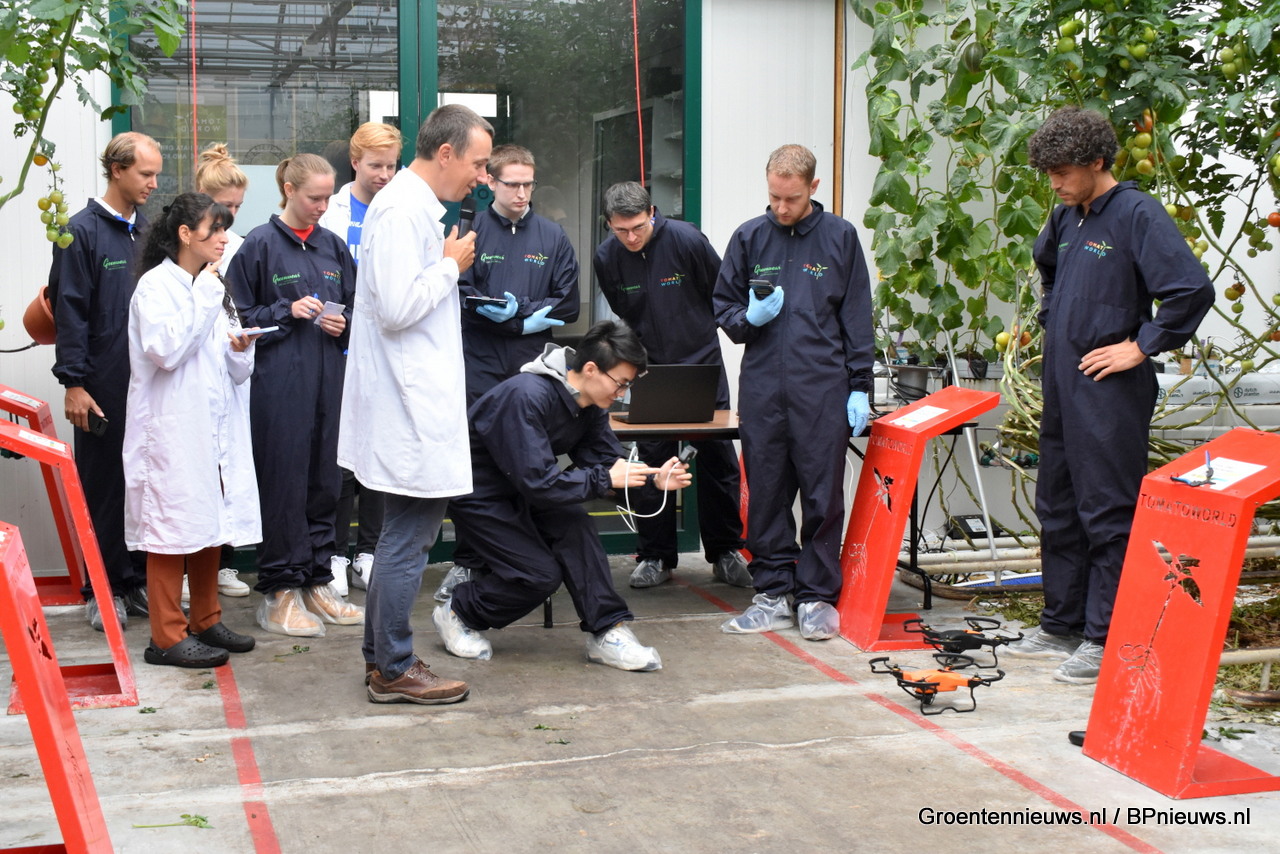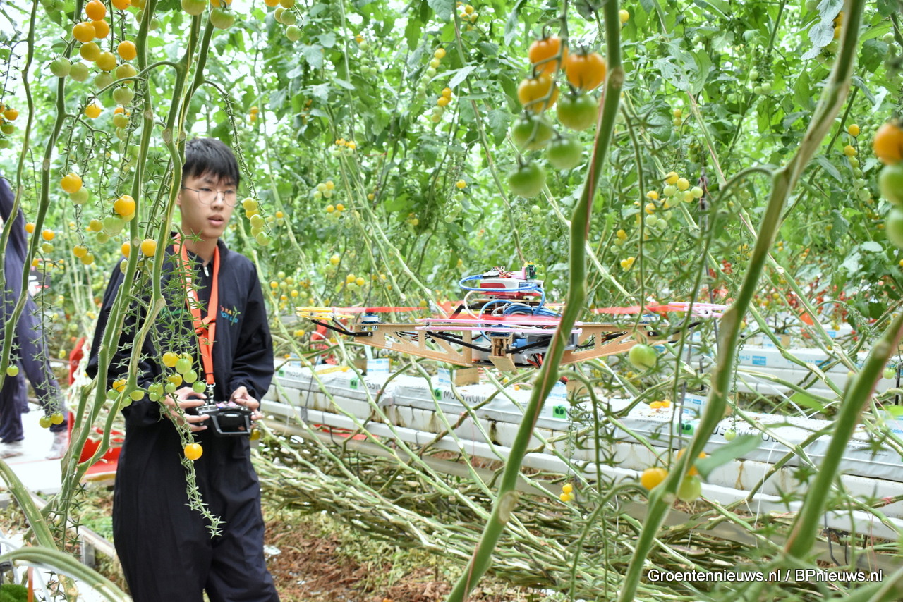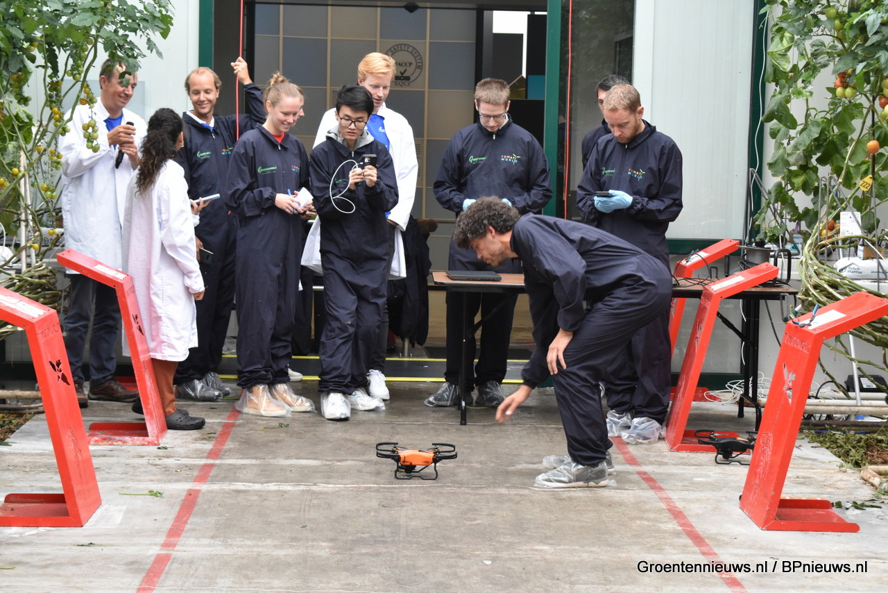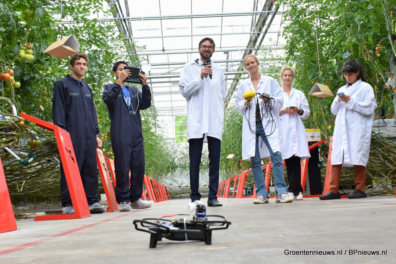 Het blijft een bijzonder zicht en bijzonder knap hoe de drone tussen de tomatenplanten door vliegt. Het team uit Brazilië had een goede eerste vlucht. Toch waren er nog wat aanpassingen nodig om de vlucht af te kunnen maken. In de middag deden ze nog een poging.