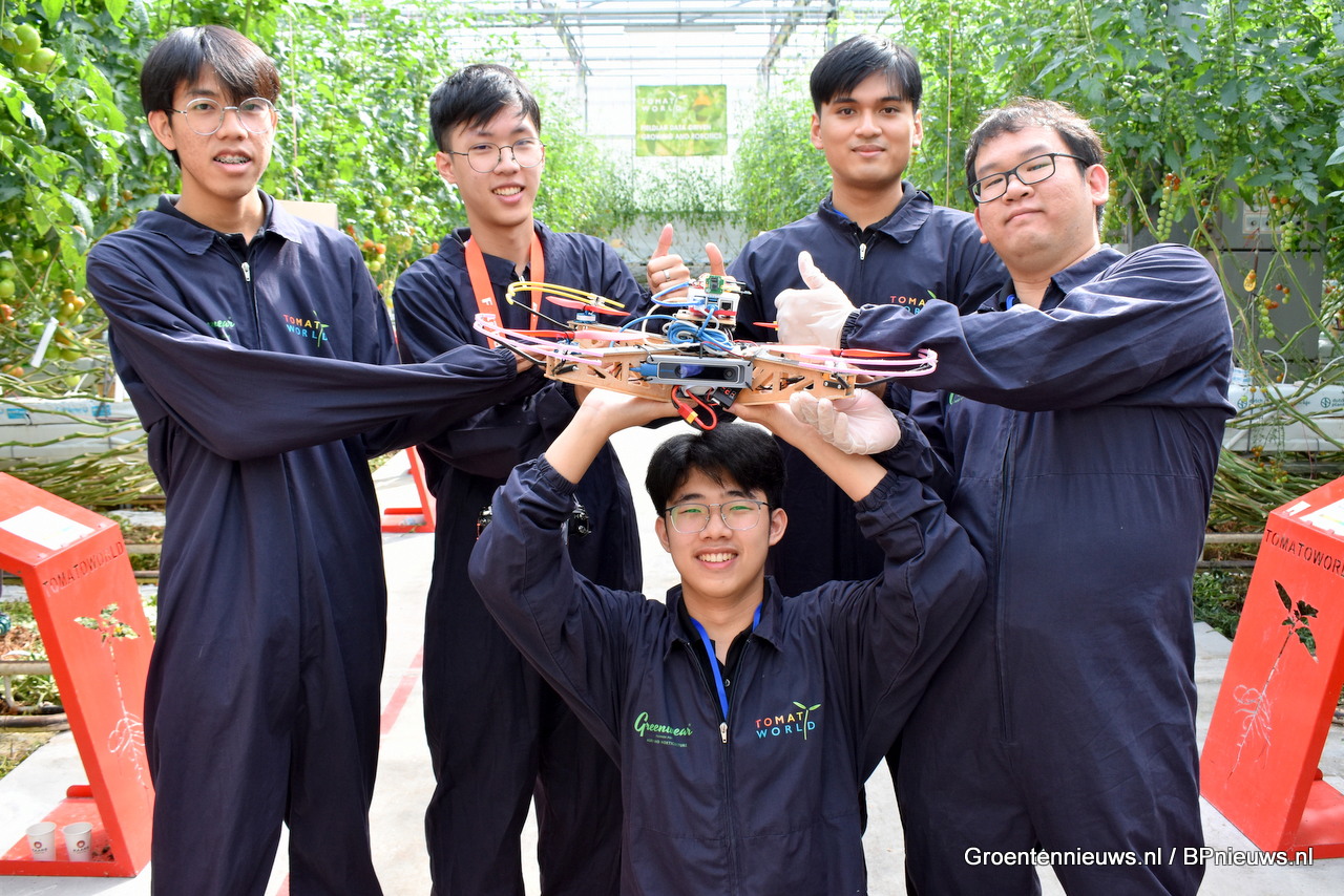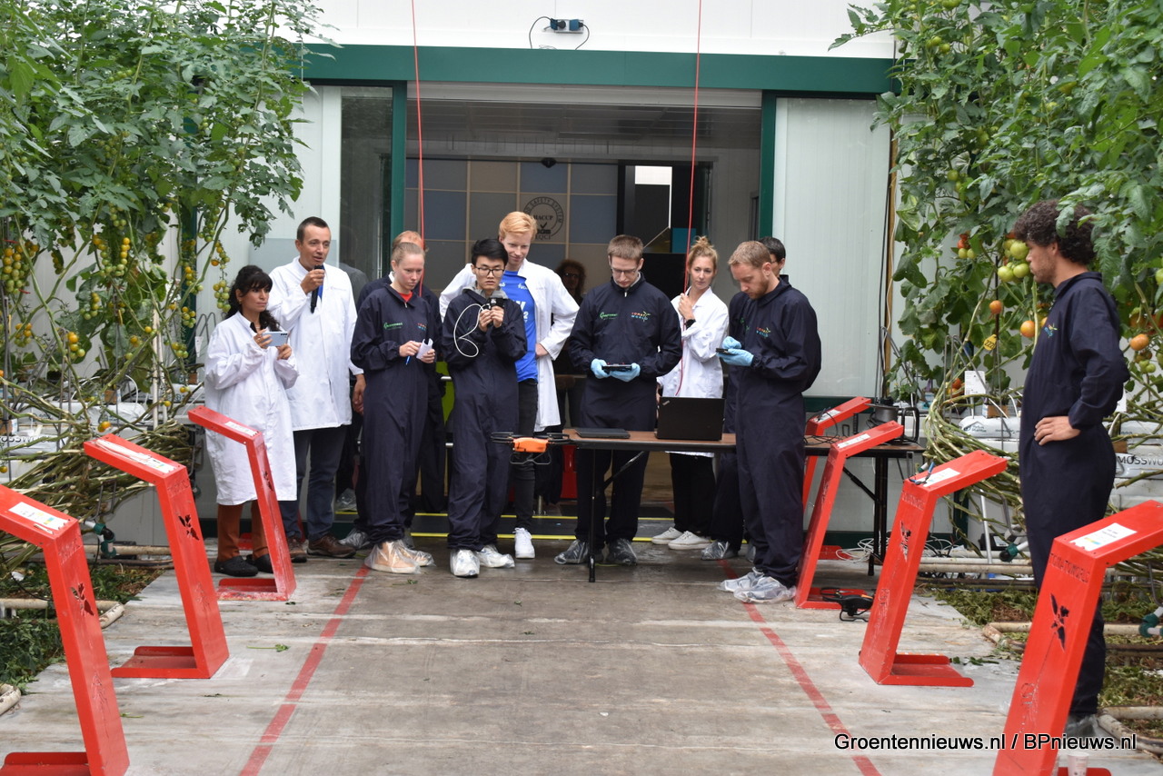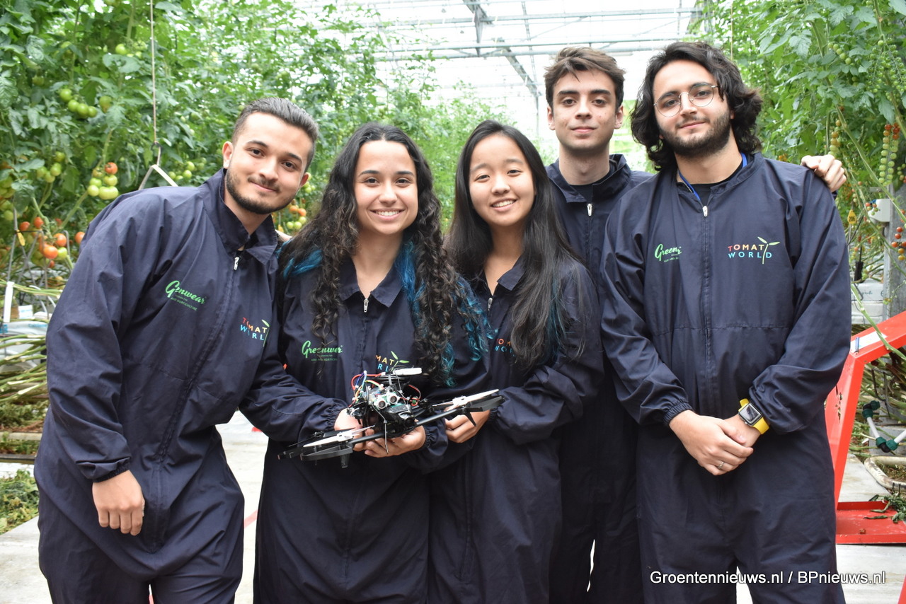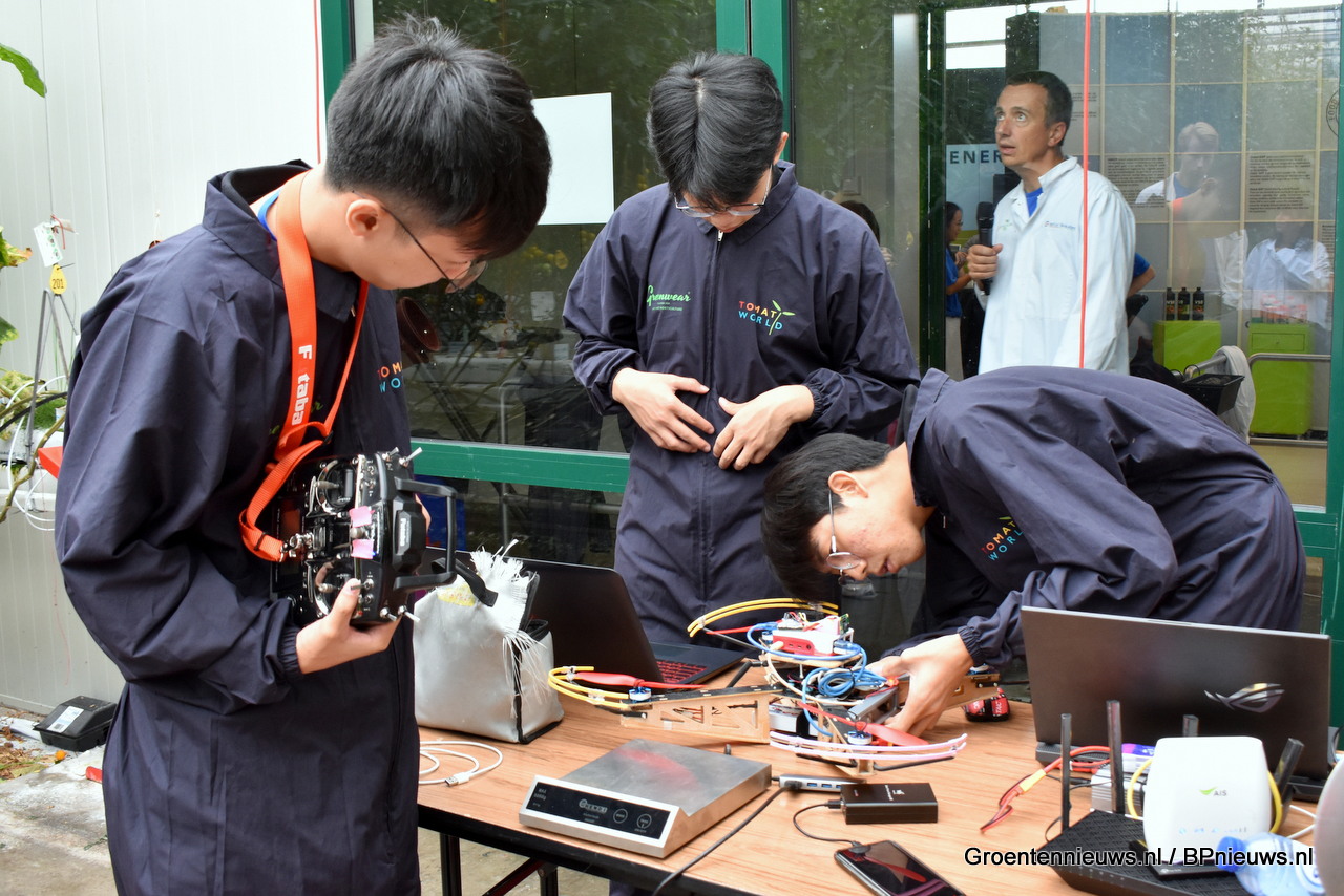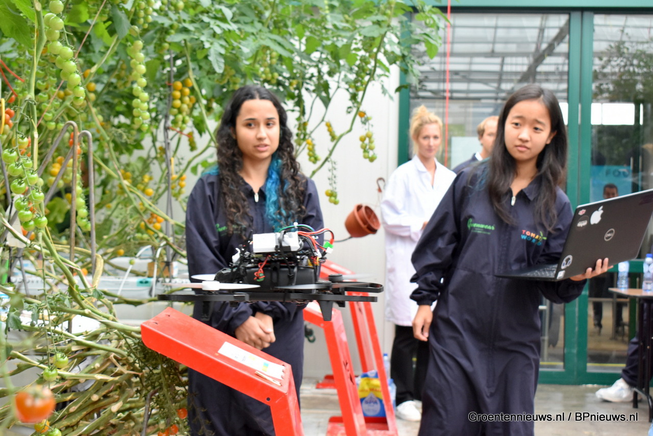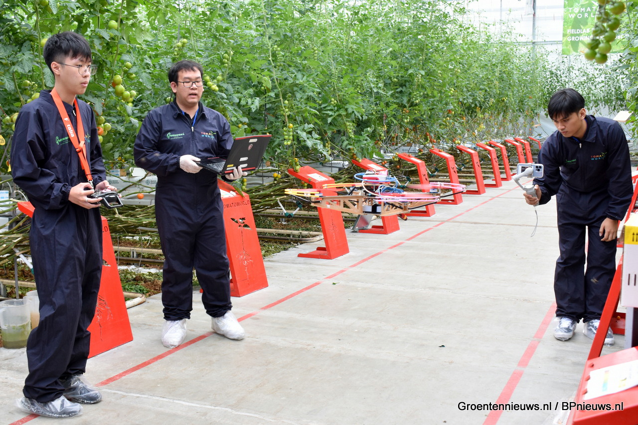 Het blijft een bijzonder zicht en bijzonder knap hoe de drone tussen de tomatenplanten door vliegt. Het team uit Brazilië had een goede eerste vlucht. Toch waren er nog wat aanpassingen nodig om de vlucht af te kunnen maken. In de middag deden ze nog een poging.