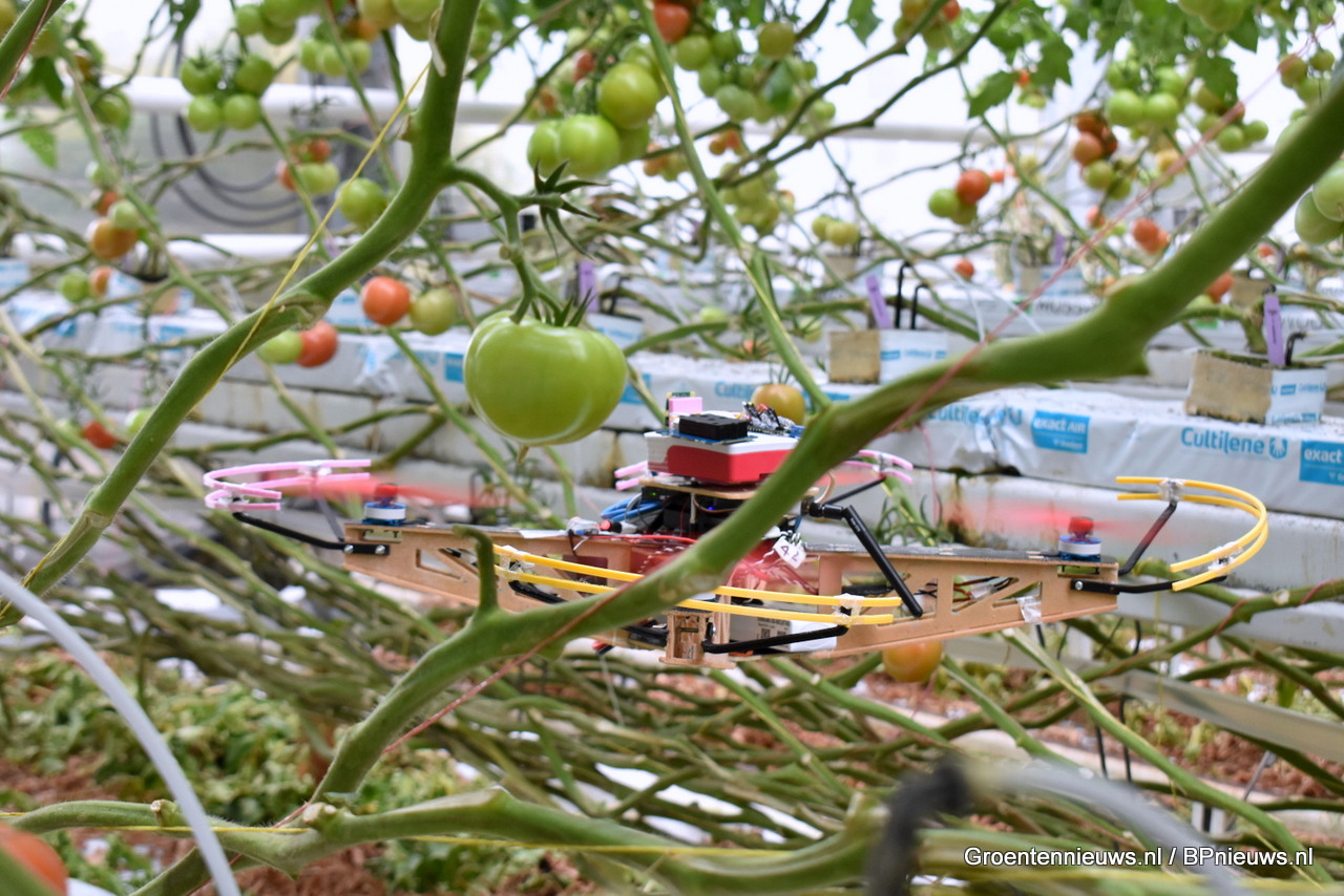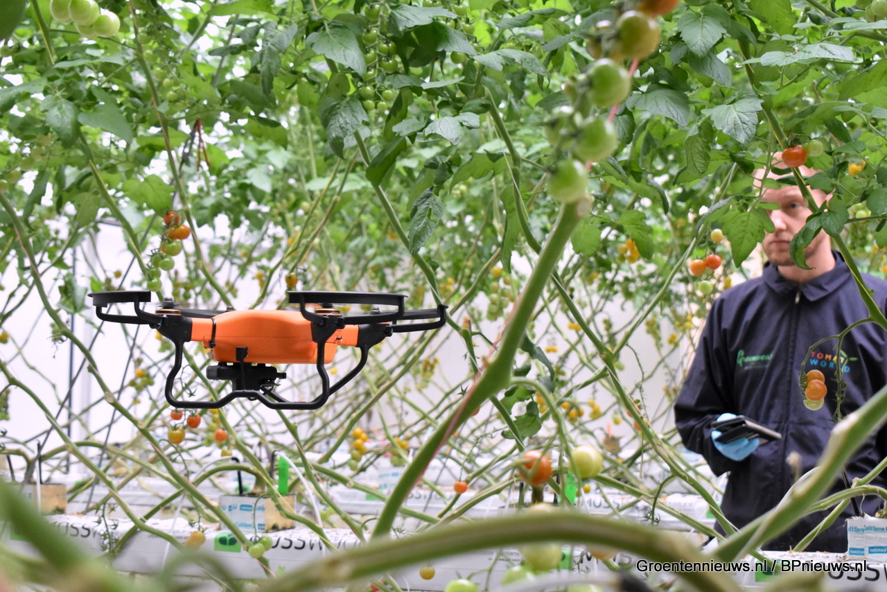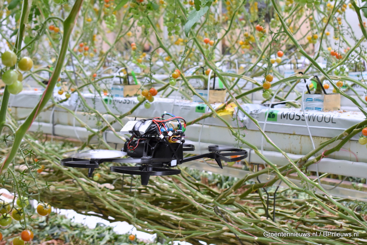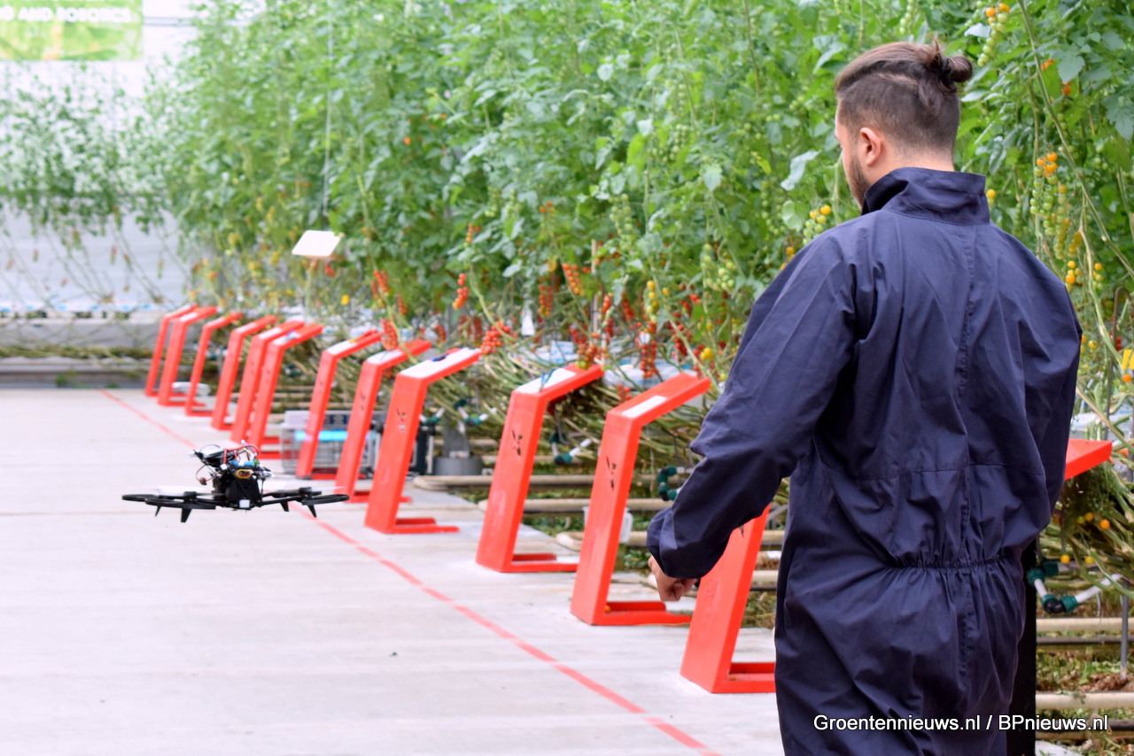 Doordat er nog wat aanpassingen nodig waren, was het nog niet mogelijk om de drone zelfstandig door de paden te laten vliegen bij de eerste vlucht. Dan zijn er alsnog een vaste hand en stalen zenuwen voor nodig om de drone foutloos tussen de tomatenplanten te laten vliegen.