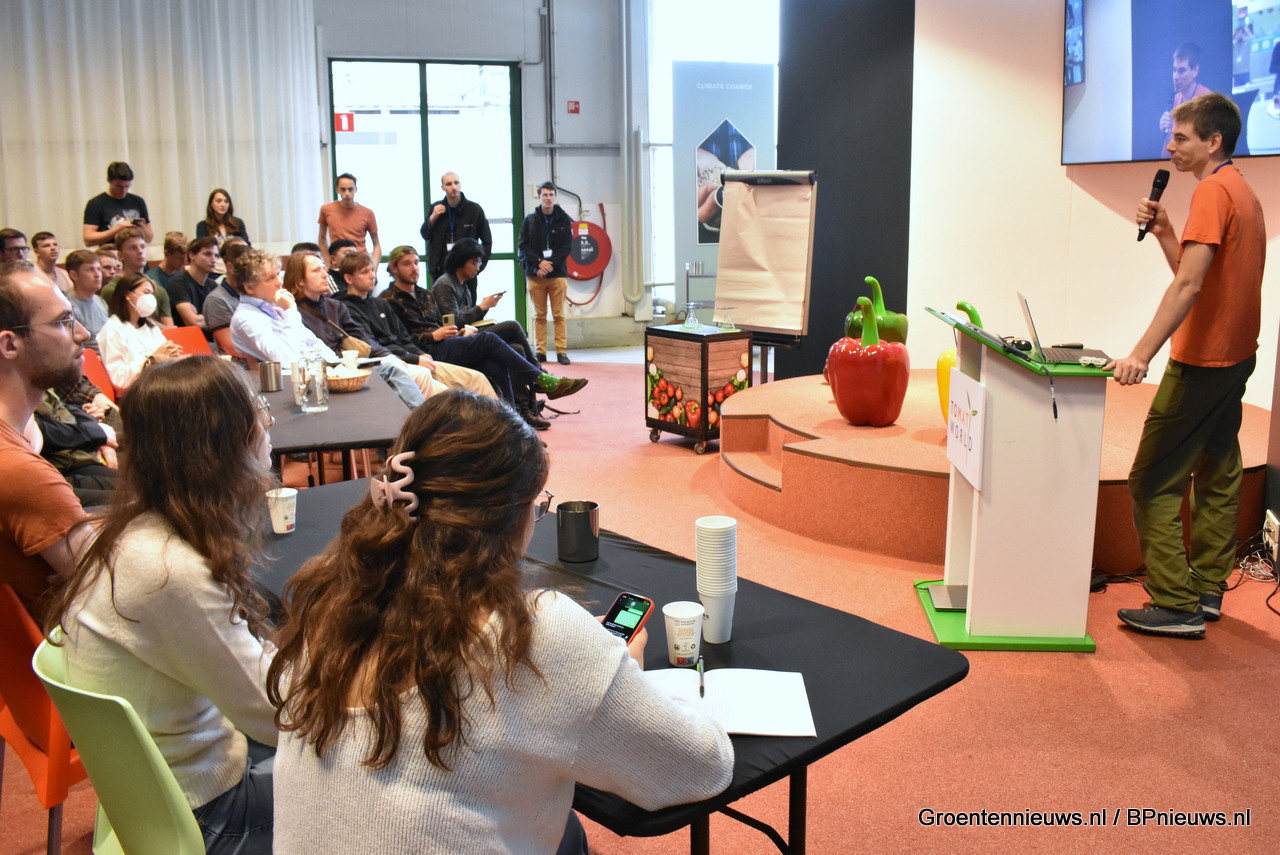 Kevin van Hecke, van PATS Indoor drone solutions, gaf een lezing over hun drones en hoe deze al gebruikt worden in diverse teelten.