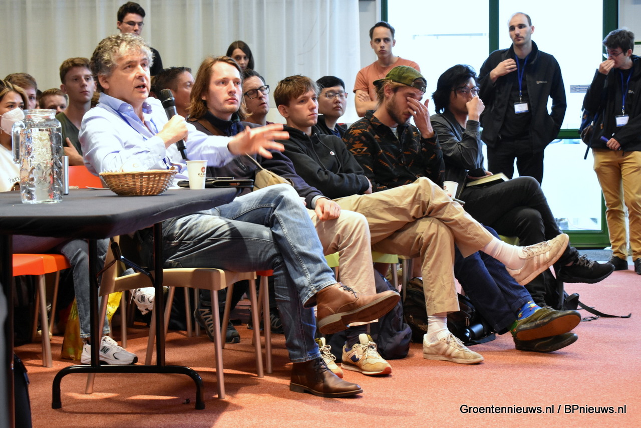 Guido de Croon deed verslag vanuit de kas aan de bezoekers in de zaal.