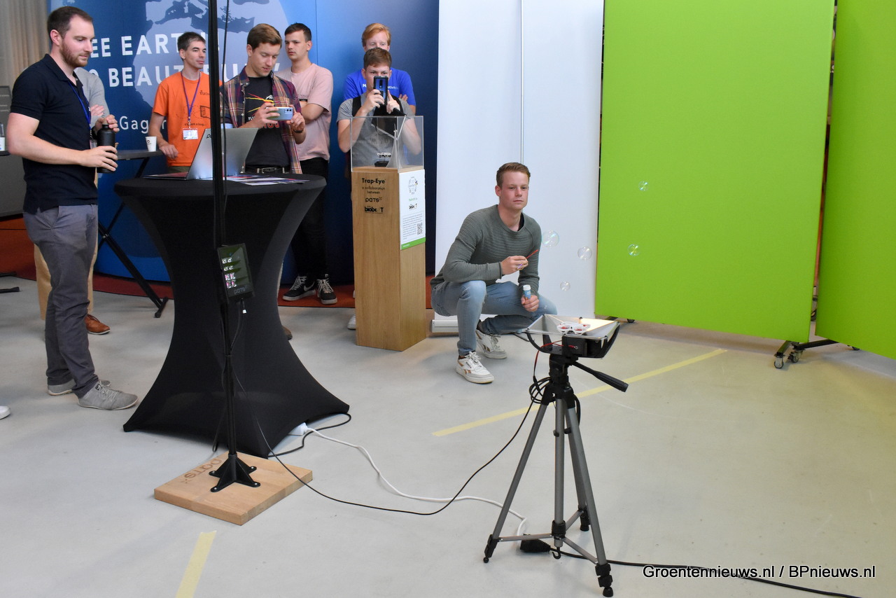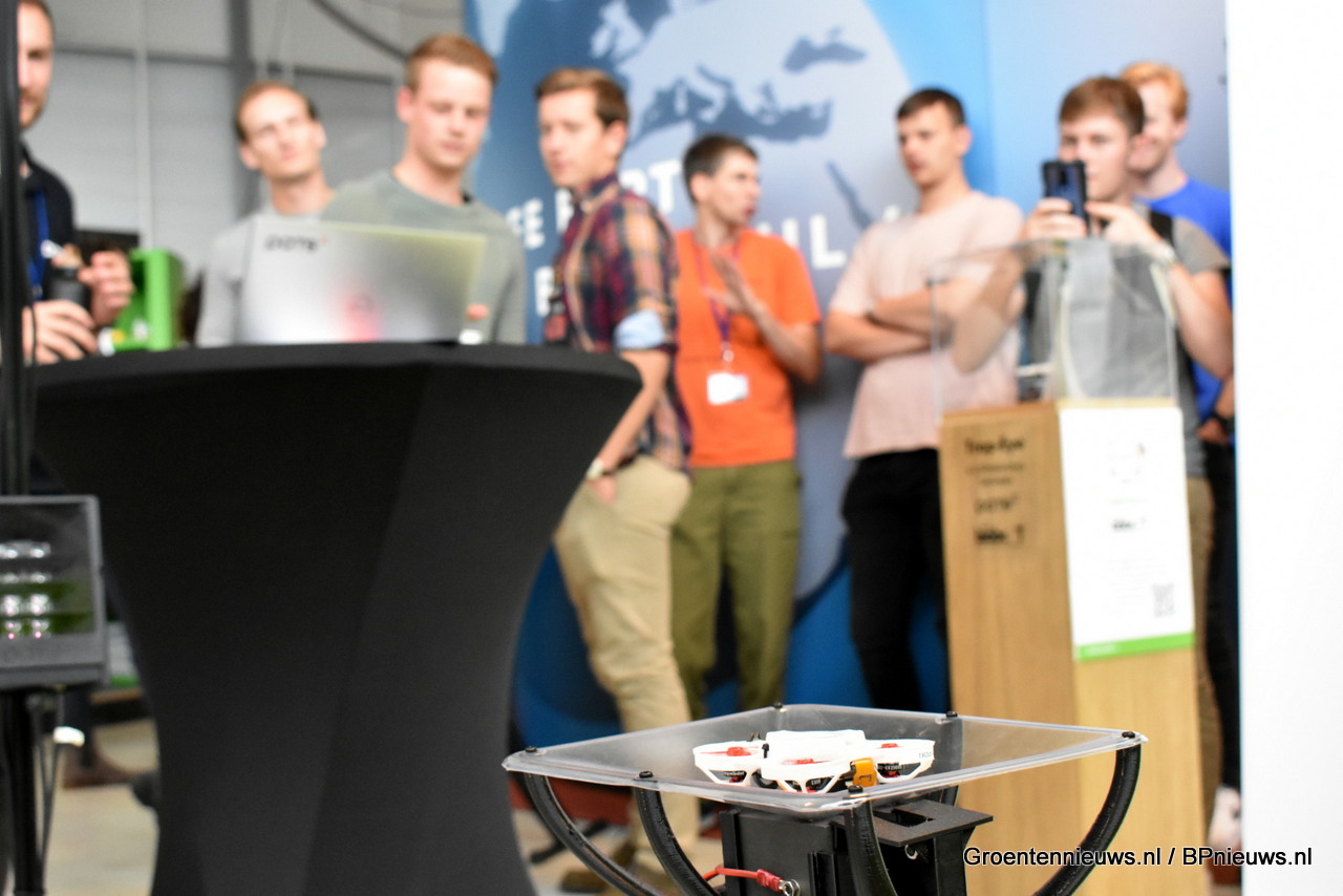 Er is toch nog wat extra werk nodig om de drone foutloos door de paden te kunnen laten vliegen. Na de lunch gaan ze voor de 2e run.