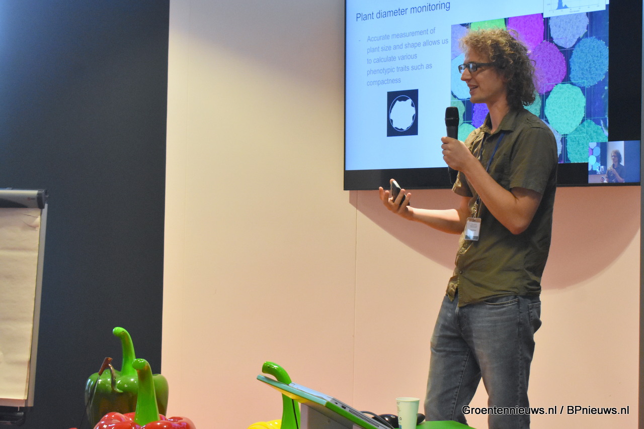 Jeroen Delcour van Track32 gaf een lezing over hoe zij drone gebruiken om verschillende soorten data van gewassen te leveren. Zo kan Track32 met de software die zij gebruiken o.a. inzicht geven in het aantal planten dat in bloei staat, hoeveel knoppen deze heeft en de diameters daarvan.