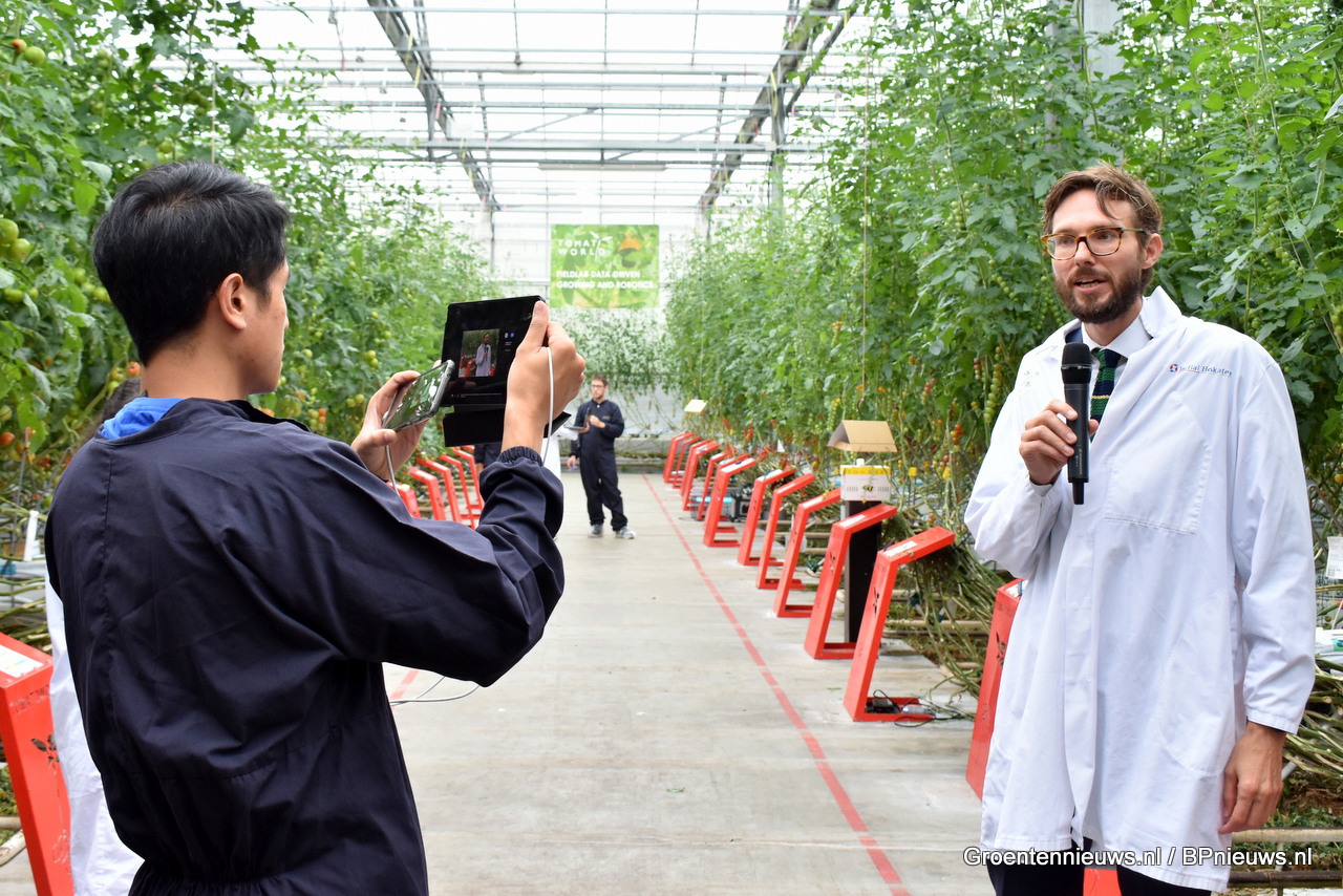 Guido de Croon interviewt Matej na zijn demonstratie in de kas.