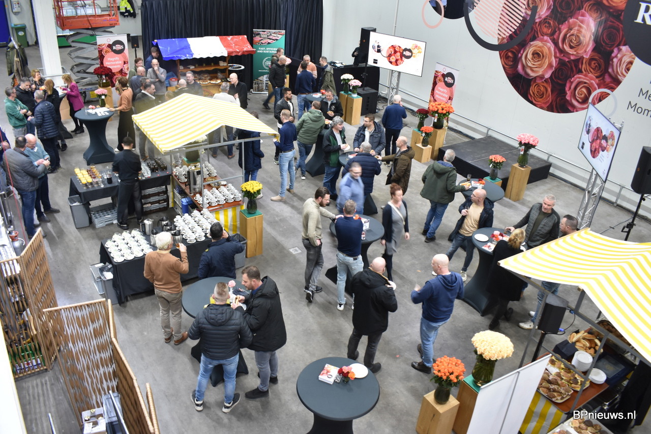 De mannen van Zandbergen Roses en FlowerForce genoten na de rondleiding ook van een lekker broodje en een drankje.